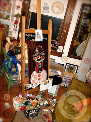 So above you see a photo of a corner of my studio… where I have a picture of only ONE of the many new works for this show …I went a bit nuts with the water marks in this photo since I just after all these years using photoshop discovered how to make my art work and name logo into a brush/stamp so not only was I watermarking the image but honestly I was just having fun. this particular painting I just started but I am in love already and felt I wanted to share a bit to get you hopefully excited for the rest of the work which I am very proud of and CAN’T wait to share with everyone. This particular painting is called ‘When Giving Leaves You Empty’ its an oil on board custom cut to size for an amazing special antique frame I found in the garbage… well my Father-in-law junk man extraordinaire found it for me he is the best! So painting painting painting varnishing varnishing framing framing framing it is all I am doing these days it seems. In between watching amazing storms and sunsets! Tonight the sunset is brought to you by the letter S for stunning! What I have to say about the beauty of todays sunset: