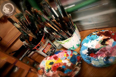 See all my brushes and paints… and yes a telescope for stargazing not for spying 😉