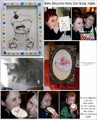 Sweet Success!Angie MasonJan 31, 20051 min readMy friend sarah graduated pastry chef school yesterday ^__^ tons of treats were eaten including her sculpture and also I made her a little drawing for her of the cupcake kid which is her. Hooray for chocolate treats that are also pretty eye candy.